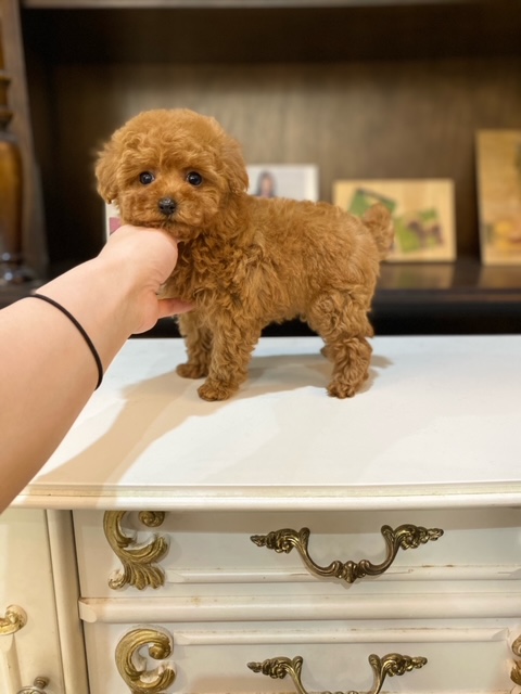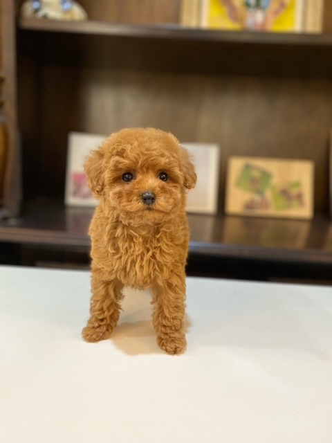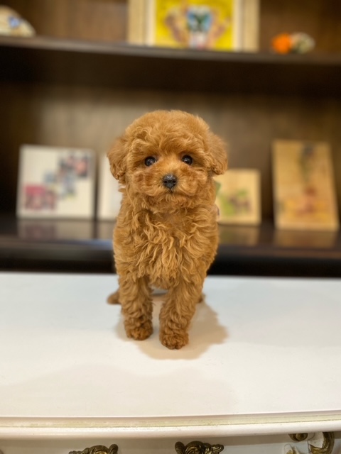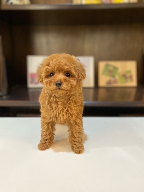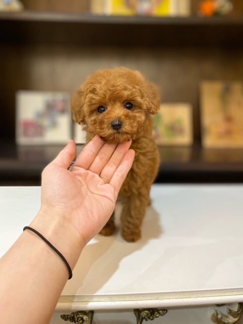 ★ギュッと詰まったコロコロのティーカップ姫★ 色味は写真よりぜんぜん濃いです!!! 成犬時の予想サイズが1.4kg位のティーカップサイズタイプに仕上がりそうな子です。 顔が超絶可愛くて、目は真ん丸でクリックリ、マズルはビックリする位に詰まっていて、猫の口元の様にドン詰まりです。 この家系は、チビチビ家系でな為、予想より小さく収まってしまう可能性もございます。 色味はとても綺麗なレッドで、写真撮影では、顔の表情を重視してカメラの明るさ設定をしていますので、実際には一段階以上濃い毛色でございます。 また、毛吹きは物凄く、毛量がとっても豊富で、毛質はかなり良い柔らかな毛質をしています。 性格がとにかくイイです!! 穏やかだけど、遊びはして、でも騒がしくなく、小さな動きでチョコチョコと・・・。( *´艸`) 1回目のワクチン接種と健康診断が終わっており、すぐにお引き渡しが可能です。 飼育の事やトリミングの事など、ご不安な点も、子犬の購入後の手続きの際に一つずつ丁寧にご指導いたしております。 ご安心して、お気軽にお問い合わせ下さいませ。 表示価格は現金特価となっております。 カードでお支払いのお客様は635,250円(税抜577,500円)でございます。 当社で飼育の際に実際に使用しているゲージやトイレなどの生活用品の一式がセットになって37,800円の飼育セットの御用意がございます。 犬種ごとに選択いただくゲージも違いますので、初めての方は、ワンちゃんの購入の際に、同時に飼育セットをお持ち帰りいただく事をオススメしております。 ワンちゃんも使い慣れているので、不安無く新しい生活がスタート出来ると思います。 |
