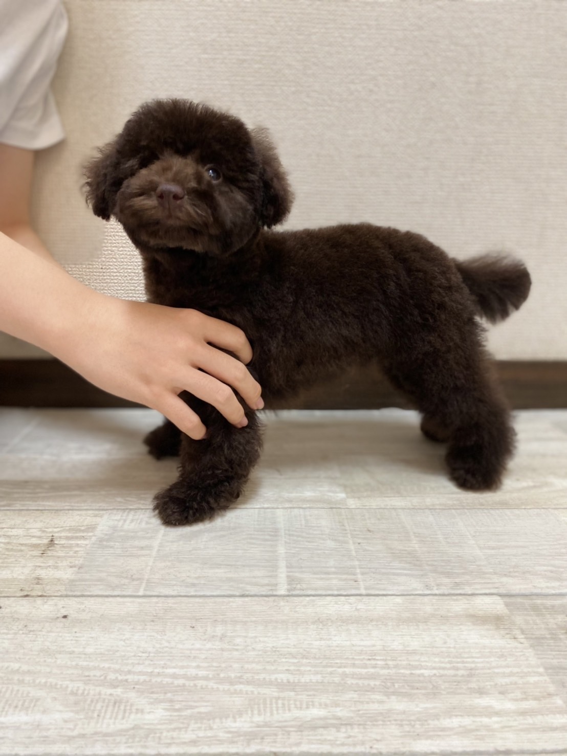 色素はとっても濃い子になります!!! 写真の明るさで鼻の色素が薄い感じに見えてしまいますが、鼻も唇も毛もとても濃い子です❣️ ★お目目クリクリのブラウンくん★ PRA発症しません。 成犬時の予想サイズが2kg位の小ぶりタイニーサイズ予想の男の子です。 女の子のような可愛らしいお顔をしています! 差し毛やミスカラーはありません。 フレンドリーな性格の子で、我が家の子供達にとてもよく懐いて、子供が好きな様子です。 オモチャなどにも興味がある子です。 毛量が抜群なので、カットもとても楽しめるタイプです♪ 健康診断とワクチンが済んでおり、すぐにお引き渡し可能です。 お支払いは現金決済のみとなります。 |