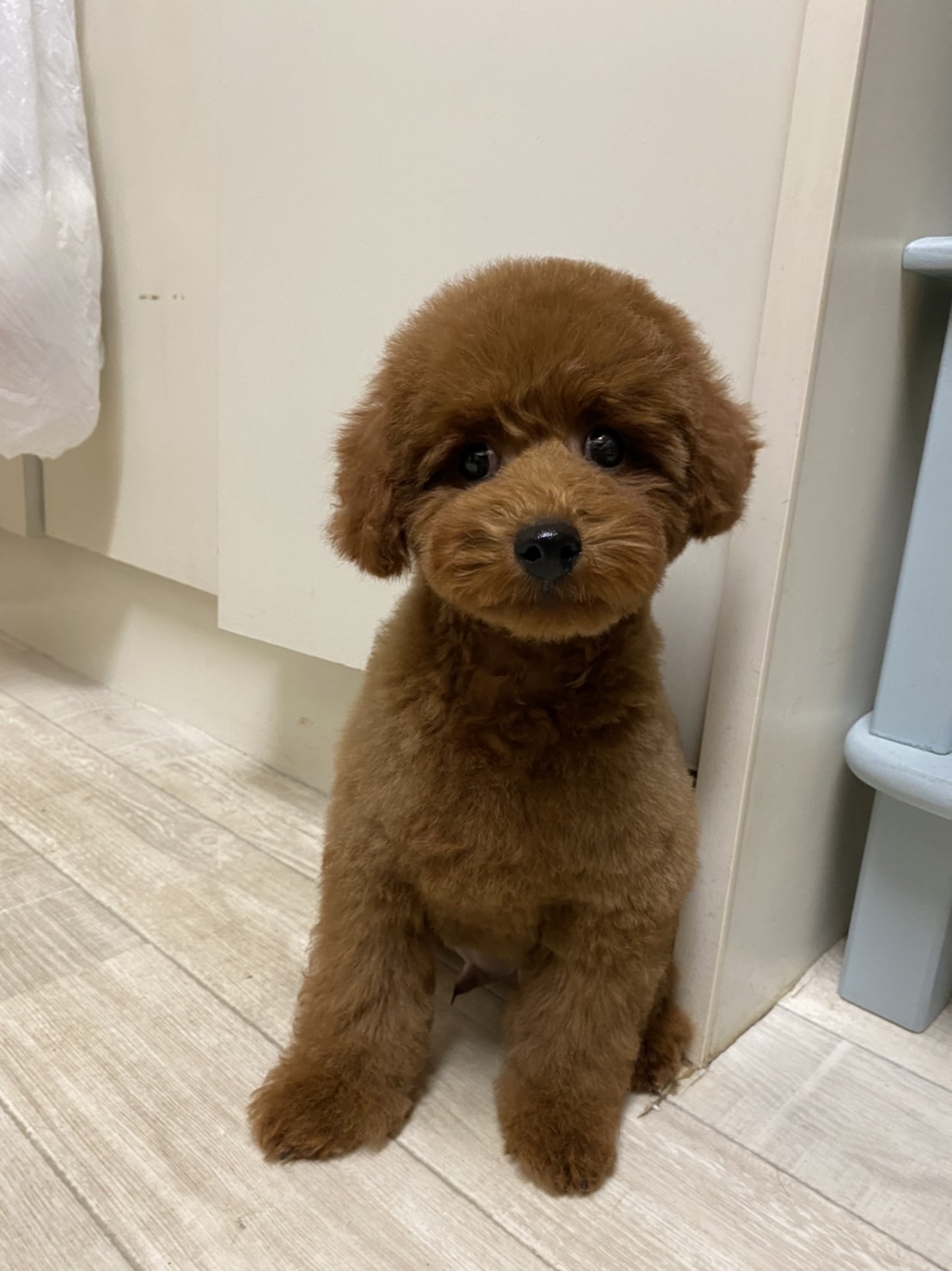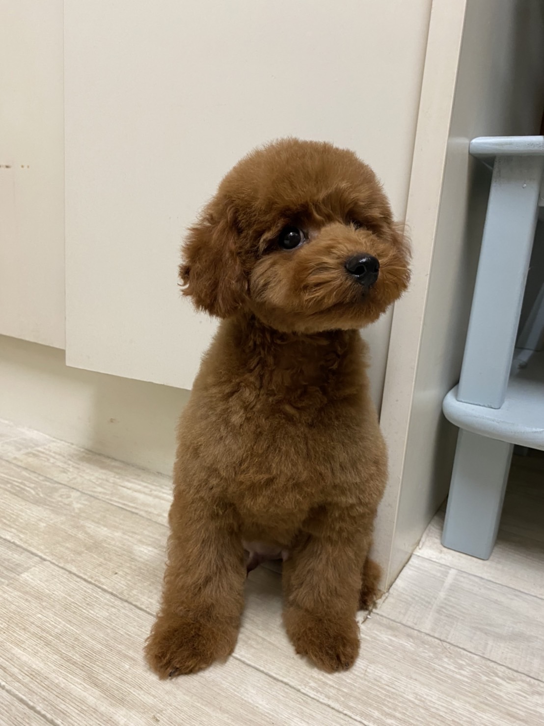 ※それぞれの画像の左上にある虫眼鏡ボタンを押して、元の画素数で必ずご覧くださいませ。 そのままですと画素数が下がっており暗く荒いです。 ★ディープレッド・毛量抜群★ 成犬時の予想サイズが2.5kg位のタイニーサイズを予想している男の子です。 毛量が抜群で、毛を掻き分けても地肌の見えないボリューム。 毛色は濃いレンガ色のかなり濃いディープレッドです。 中・大型犬との多頭飼育を希望される方や、小型犬飼育初心者、小さなお子様が居るご家庭、元気一杯のお子様が居る家庭、ランやアウトドアが好きな家庭、ウォーキングが趣味の方に最適です!! しっかりしていて、サイズとしても骨折などの心配が無い事、低血糖の心配が無い事などがございます。 性格は、サイズとは違い、温厚でおっとり、ゆったりとした性格で、穏やかなタイプに育っています。 1回目のワクチン接種と健康診断が終わっており、すぐにお引渡しが可能です。 お支払いは現金決済のみとなります。 飼育の事やトリミングの事など、ご不安な点も、子犬の購入後の手続きの際に一つずつ丁寧にご指導いたしております。 ご安心して、お気軽にお問い合わせ下さいませ |