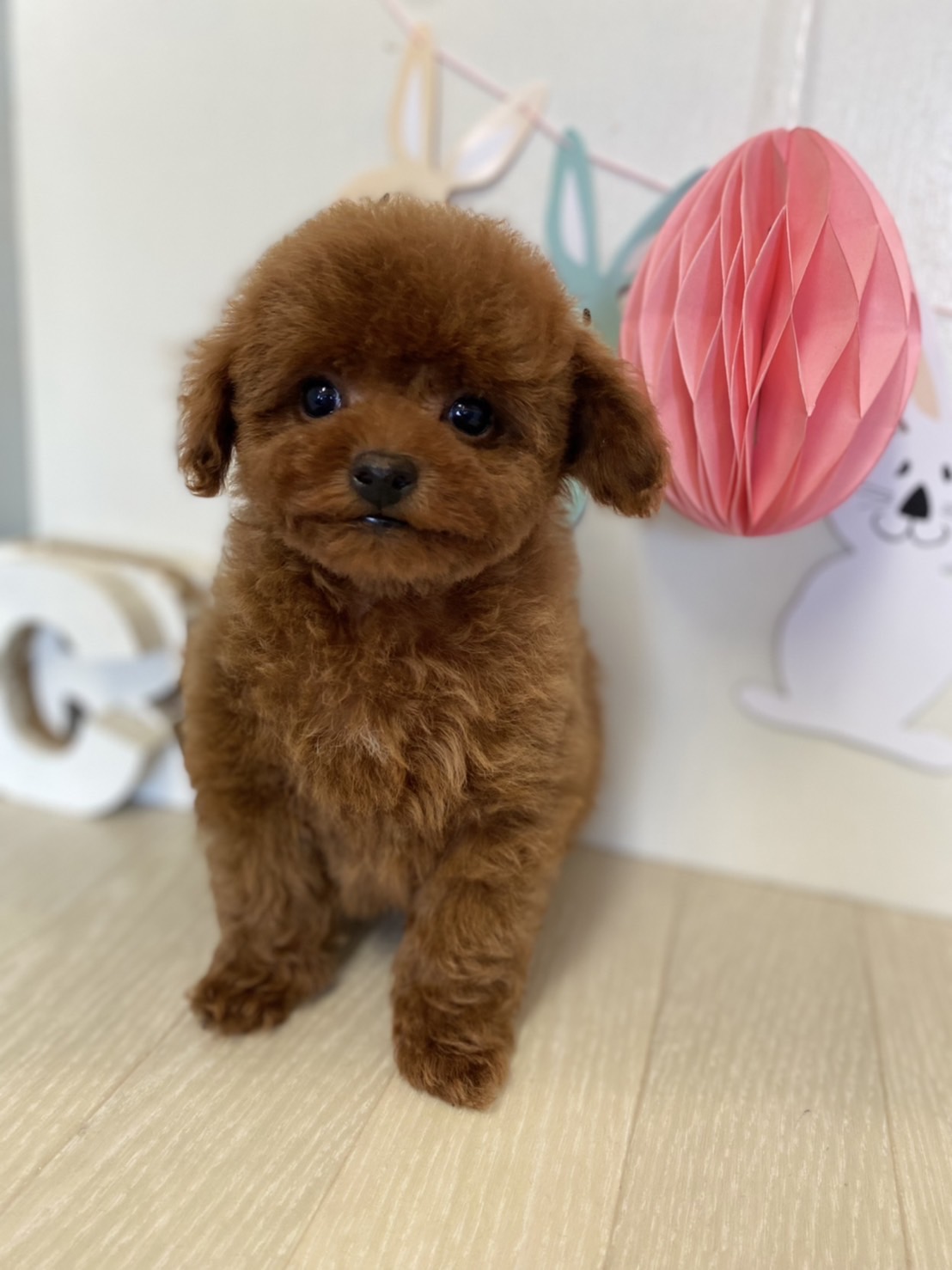 ※それぞれの画像の左上にある虫眼鏡ボタンを押して、元の画素数で必ずご覧くださいませ。 そのままですと画素数が下がっており暗く荒いです。 ★はい!完璧!!激カワの男の子★ 成犬時の予想サイズが1.6kg位のティーカップサイズタイプに仕上がりそうな子です。 顔がとっても可愛くて、目がクリクリしていて大きく、マズルはビックリする位に猫の口元の様にドン詰まりです。 色味が濃いめのレッドで、写真撮影では、顔の表情を重視してカメラの明るさ設定をしていますので、実際には一段階以上濃い毛色でございます。 また、毛吹きは物凄く、毛量がとっても豊富で、毛質はかなり良い柔らかな毛質をしています。 数本の差し毛(白い毛)が胸に入ってますが、健康上に何の問題もございません。 性格は甘えん坊さんで人が大好きな子です。 お支払い方法は現金決済となります。 1回目のワクチン接種と健康診断が終わっており、すぐにお引き渡しが可能です。 飼育の事やトリミングの事など、ご不安な点も、子犬の購入後の手続きの際に一つずつ丁寧にご指導いたしております。 ご安心して、お気軽にお問い合わせ下さいませ。 |
