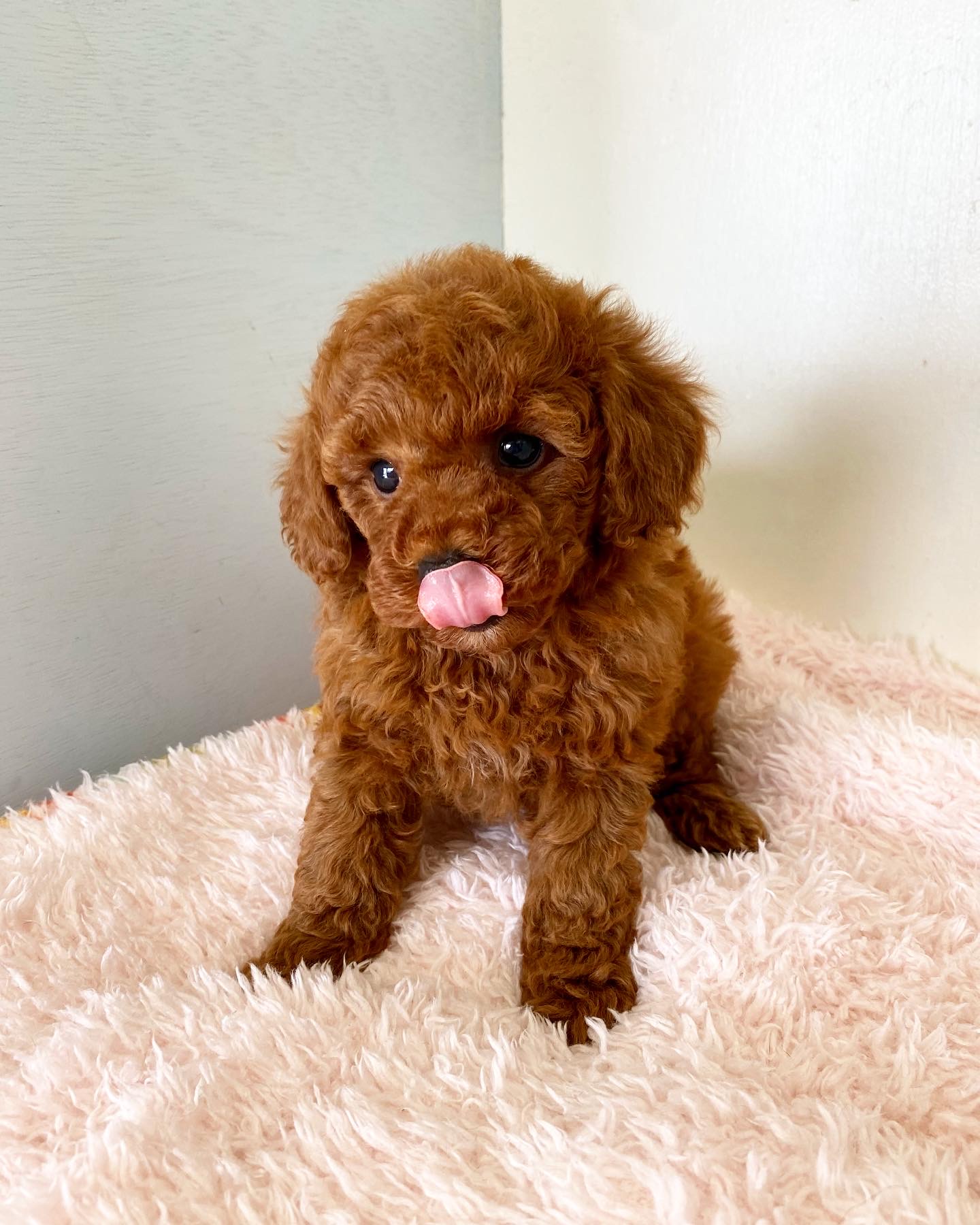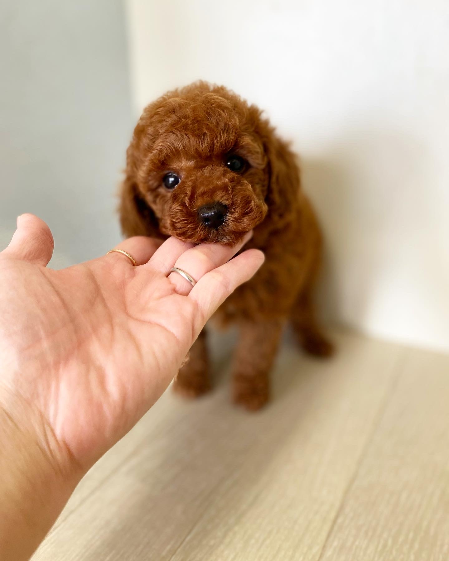 ※それぞれの画像の左上にある虫眼鏡ボタンを押して、元の画素数で必ずご覧くださいませ。 そのままですと画素数が下がっており暗く荒いです。 ★ディープレッド・毛量最高・毛質最高★ 成犬時の予想サイズが2.8kg位のタイニーサイズタイプの女のです。 濃いレッドカラーで、毛量は今年1番で、毛質も柔らかく、しなやかで今年1番!!! 胸と顎に数本の差し毛(白い毛)が入りましたので、その分価格を低く設定しておりますが、ミスカラー(ドッグショーに出られないというだけのもので、健康上の問題はありません。)以外は申し分の無いかなり良い犬質です。 優しく穏やかな性格をしている子で、3匹兄妹なので、噛まれたら痛い、噛んだら痛いなど、しっかりと社会性を身につけながら生活してます。 法令遵守の為、10月18日よりお引き渡しが可能です。 18日以前におきましては、半金お支払いいただいたお客様で確定いたします。お客様の都合によるキャンセルの際は、予約金の返金が出来ませんので、よくご検討の上お問い合わせくださいませ。 18日以降につきましては、見学、決定、そのままお連れいただきます。予約はございません。 お支払い方法は現金払いのみとなっております。 飼育の事やトリミングの事など、ご不安な点も、子犬の購入後の手続きの際に一つずつ丁寧にご指導いたしております。 ご安心して、お気軽にお問い合わせ下さいませ。 |