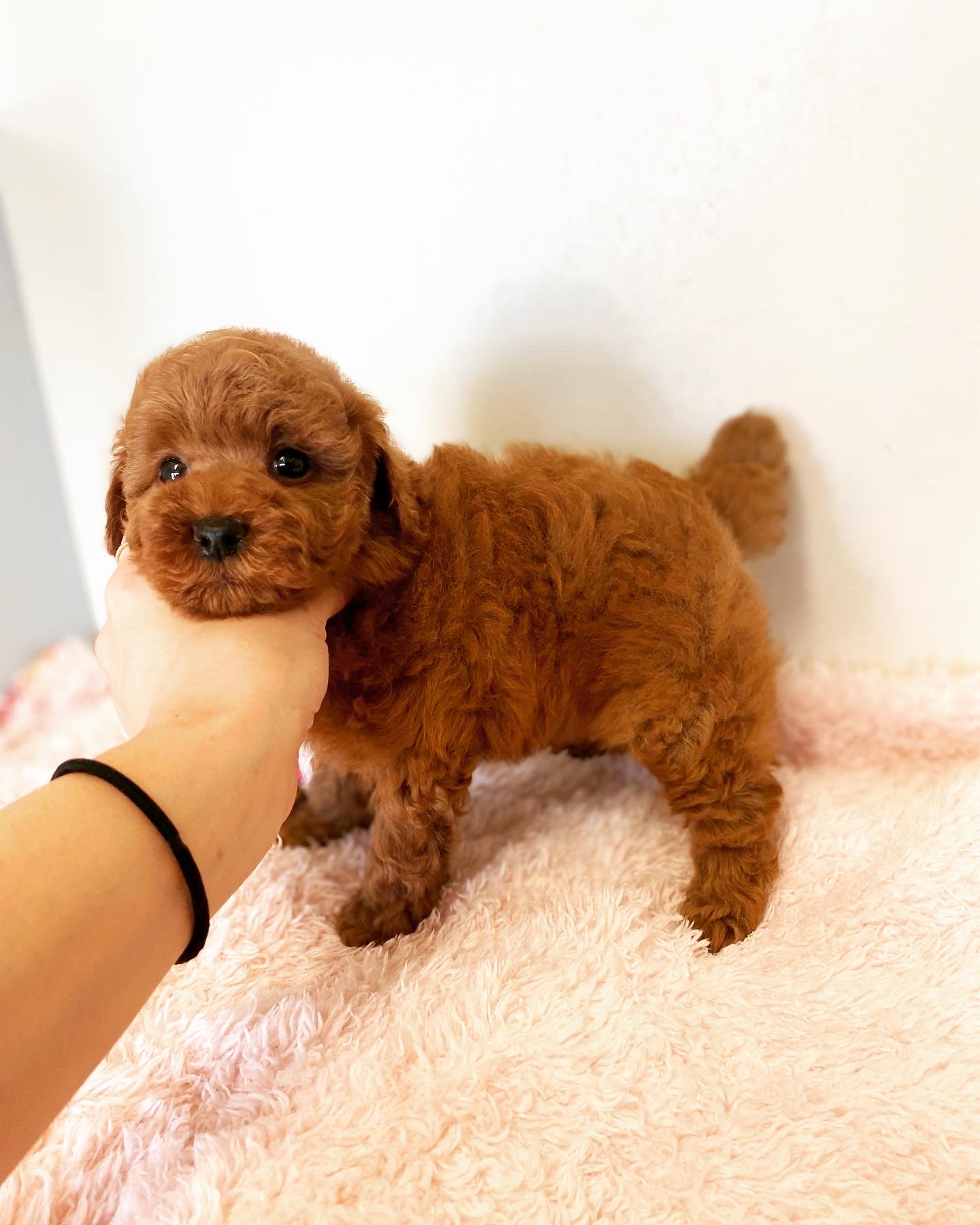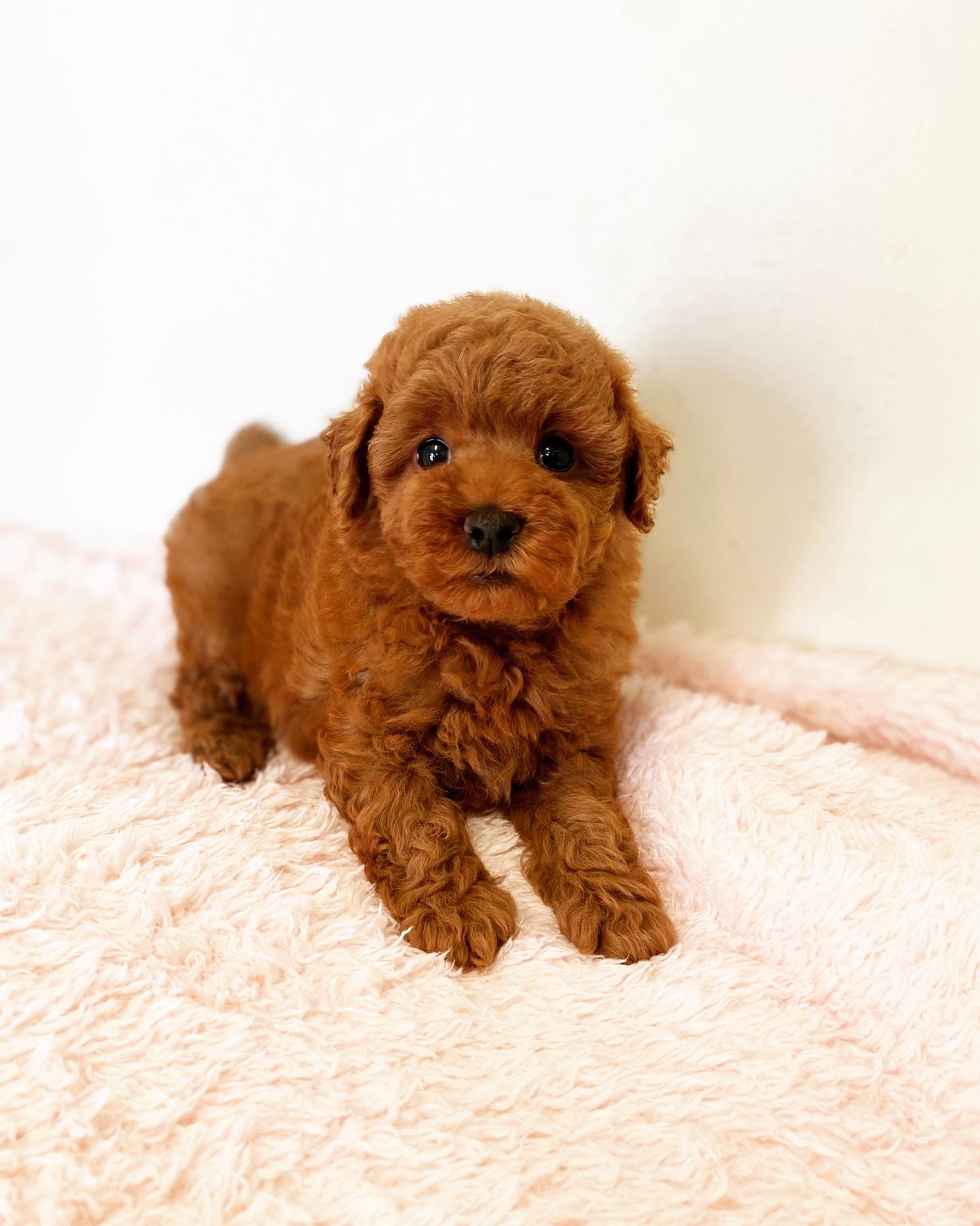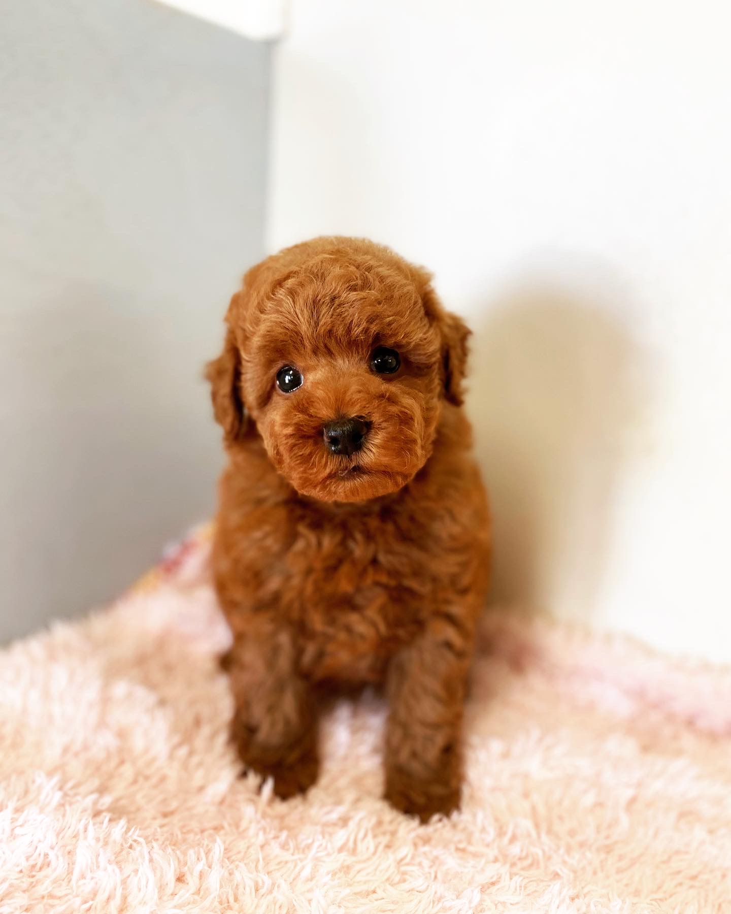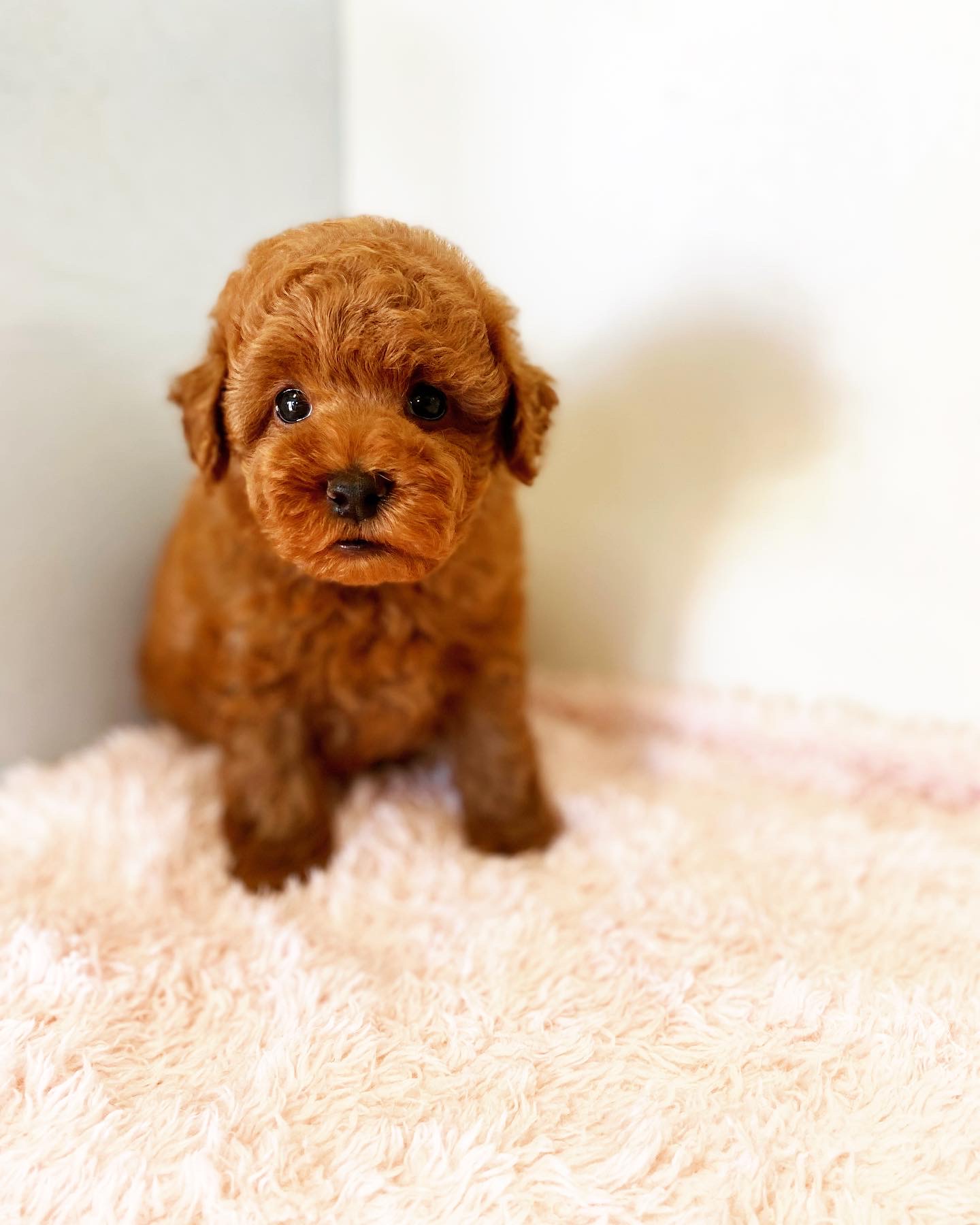 ※それぞれの画像の左上にある虫眼鏡ボタンを押して、元の画素数で必ずご覧くださいませ。 そのままですと画素数が下がっており暗く荒いです。 ★穏やかで優しい男の子★ 成犬時の予想サイズが3.2kg位のトイサイズを予想している男の子です。 写真で分かりにくいですが、色味がとても濃いレッドになります。 毛量が抜群で、毛を掻き分けても地肌の見えないボリューム。 性格は、温厚でおっとり、ゆったりとした性格で、穏やかなタイプに育っています。 1回目のワクチン接種と健康診断、マイクロチップ挿入後の10月27日からお引渡しが可能です。 お支払いは現金決済のみとなります。 飼育の事やトリミングの事など、ご不安な点も、子犬の購入後の手続きの際に一つずつ丁寧にご指導いたしております。 ご安心して、お気軽にお問い合わせ下さいませ |
