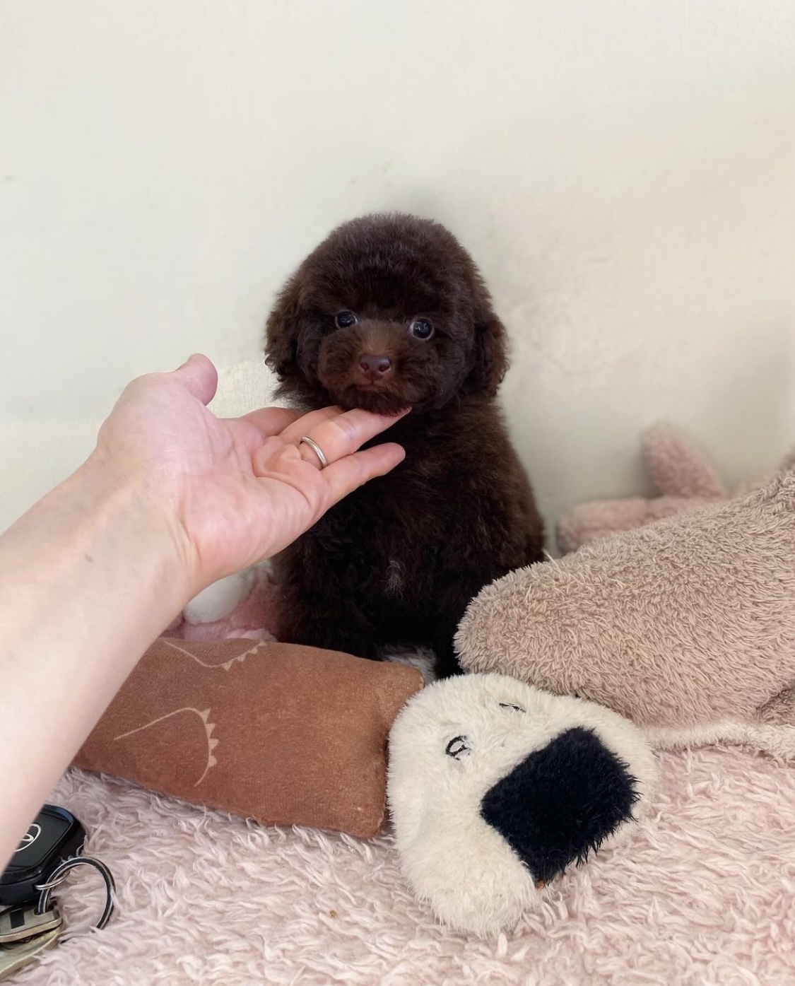 ※それぞれの画像の左上にある虫眼鏡ボタンを押して、元の画素数で必ずご覧くださいませ。 そのままですと画素数が下がっており暗く荒いです。 必ず最後までお読みの上ご予約くださいませ。 お陰様でトイプードルのブリーダー20年以上となりました。 先祖はPRAクリアのみを用いており、リピーター率80%以上(過去販売実績率比)となりました。 飼い主様募集中(⌯︎¤̴̶̷̀ᴗ¤̴̶̷́⌯︎)✧ ♡おはぎちゃんの娘♡ 6月20日生 ブラウン 女の子 お引き渡しと見学は同日となります。 8月20日以降での見学予約をお受け致します。 持ち帰り検討はお受けしておりません。 ティーカップ〜タイニーサイズ2kg位予想ですʕฅ•ᴥ•ฅʔ。*:❀ 写真では現せない濃いビターブラウン◎ 実物は鼻の色もかなり濃い焦げ茶色◎ 毛量、毛質素晴らしい◎ まん丸なお目目◎ マズルどん詰まり◎ 人も犬も大好き◎ 甘えん坊で抱っこナデナデ好き◎ ご飯ちゃんと食べる◎ 欠点無し◎ お支払いは現金払いのみとなります。 見学途中で引き落としへ出られてしまいますと、次のお客様のご対応時間をお待たせしてしまい、ご迷惑となりますので、ご注意お願い致します。 ご見学時に生後57日以上の場合は、原則として、見学及び引き渡しが同時となります。 お迎えの準備を整えてお越し頂きますので、事前に必要な方にはお手紙をメッセージに添付いたします☺️ お代として、ワンちゃん代、ワクチン代などと、アニコム保険へ加入希望の方はクレジットカード、子犬をお連れいただく為のキャリーケースをご用意お待ちくださいませ。 |